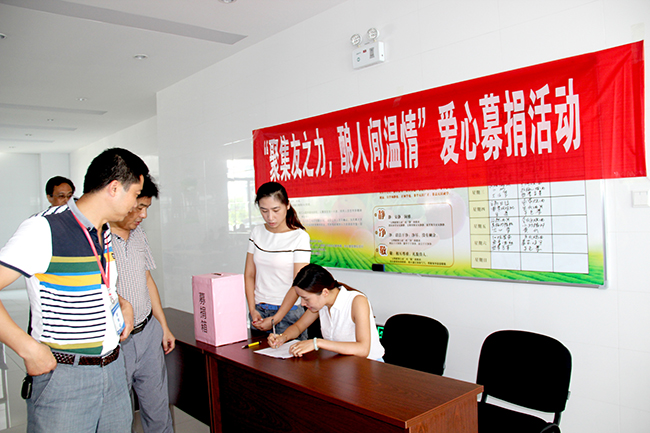 ? ? ? ?2015年7月28日中午,由總經辦牽頭組織的“聚集友之力,釀人間溫情”愛心募捐活動在公司員工餐廳舉辦。此次募捐旨在為我公司打孔車間的李成、胡燕兩位同事因車禍不幸去世獻出自己的一份愛心。