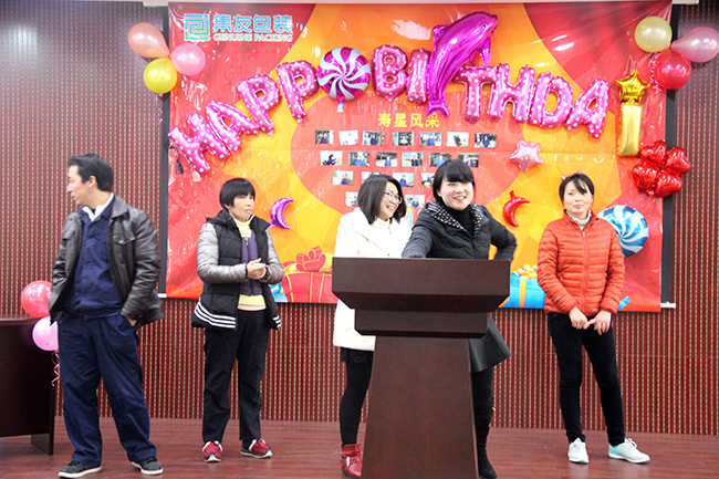 ? ? ? ?2015年11月27日,迎來了十一月份的員工生日會,此次生日會活動地點在多功能廳舉辦。活動現場共有15名生日壽星。遺憾的是還有一部分未能參加此次生日會。在此我僅代表公司向沒能參加生日會的壽星們送上遲到的祝福,祝你們生日快樂!也感謝你們一直以來在工作上的辛苦與努力。