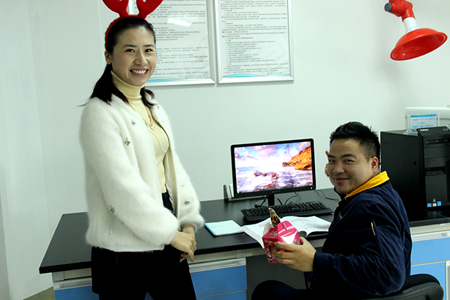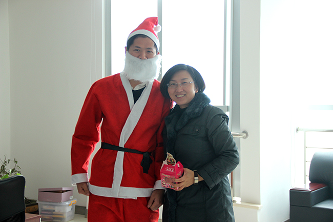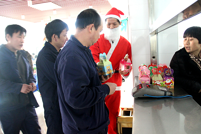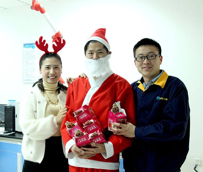? ? ? ?2015年12月25日,在圣誕節來臨之際,為了使工作繁忙的員工在工作之余也能感受節日的氣氛,公司特在圣誕節當天組織由圣誕老人來派發“蘋”安果。感謝集友人一直以來的辛勤付出,也希望我們的員工在集友的大家庭中感受到溫暖、幸福!!