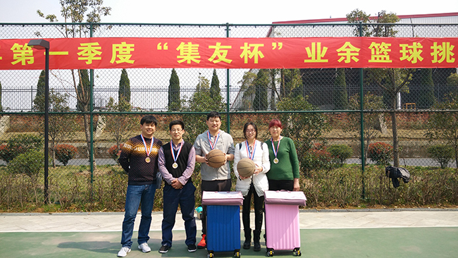 活動分為男子組和女子組,總共投球10次,分定點投球和任意定點投球,最終按照進球總分從高到低排名次。從熱身到比賽,大家輪流上場,熱情高漲。無緣決賽的同事也紛紛到場加油喝彩,操場上時不時傳來陣陣掌聲,陣陣歡笑聲。最終有五位選手獲得名次。其中,男子組銷售部袁菊山獲得冠軍,印刷車間蔡朝虎獲得亞軍,銷售部殷明獲得季軍;女子組技術中心孫清獲得冠軍,行政部吳玲獲得亞軍。