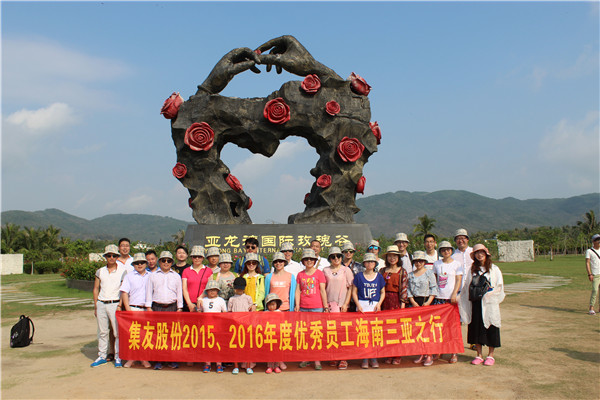 2017年4月16日晚,集友2015、2016年度優秀員工及家屬一行29人乘航班抵達“國際旅游島”——海南三亞。開啟了為期六天五夜的美好旅程,地處國境之南,近臨天涯海角,三亞憑借得天獨厚的旖旎風光,早已成為享譽華夏的旅游勝地。優秀員工及家屬游玩了,著名的蜈支洲島,呀亞達雨林文化旅游區,大小洞天,南天熱帶植物園,天涯海角,亞龍灣玫瑰谷等多個享譽國內外的著名景點,盡情的領略了海島風光。