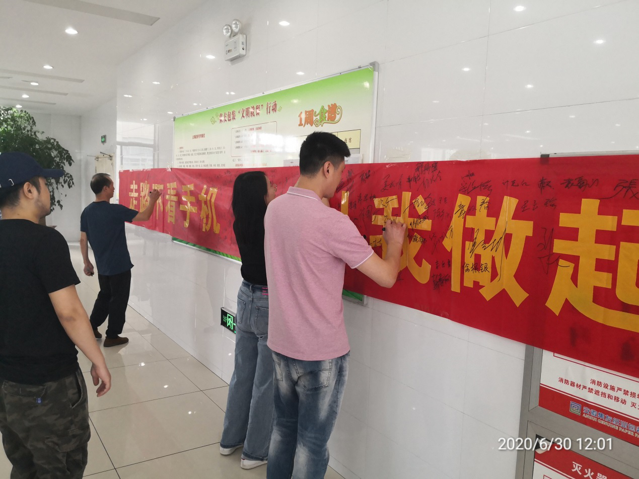 6月30日安環(huán)部組織“走路不看手機、安全從我做起”的倡導簽名活動,呼吁廣大員工培養(yǎng)良好的個人習慣,樹立安全意識,降低安全風險,避免意外傷害。“手機有道,用之有方”,正確的使用確保安全第一。